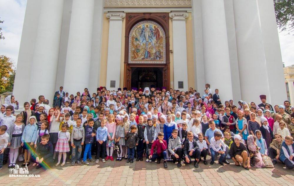Совершил молебен Высокопреосвященннейший Агафангел, Митрополит Одесский и Измаильский, в сослужении главы Отдела религиозного образования и катехизации прот. Димитрия Яковенко и духовенства заведующего воскресными школами городских храмов.